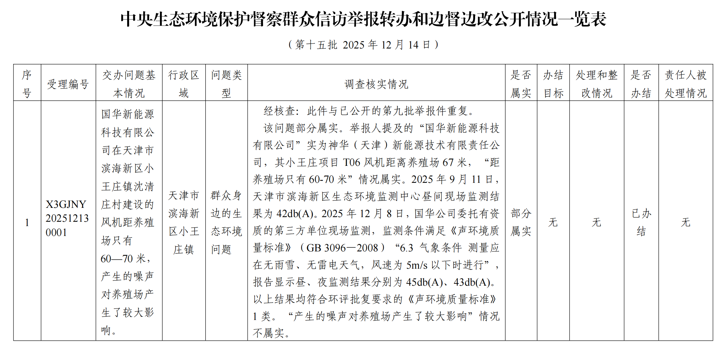 中央生态环境保护督察群众信访举报转办和边督边改公开情况一览表(第十五批 2025年12月14日)