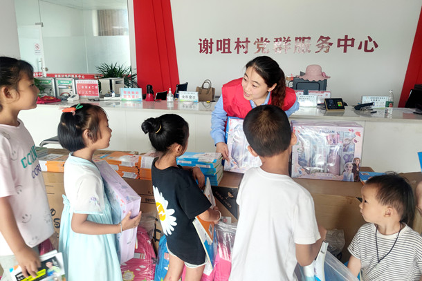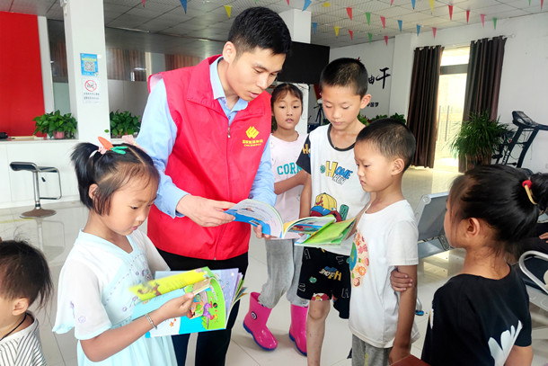 7月14日,恒盛娱乐江苏宿迁公司团委“菁生有爱”志愿者服务队来到帮扶共建村,开展“爱心助学、筑梦未来”暑期关爱留守儿童公益活动,为村里的留守儿童送去了学习读物和文具等用品,关注乡村儿童的健康成长,积极营造关爱乡村儿童的良好社会氛围。